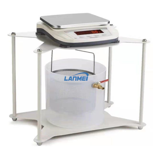 Που αποτελείται από ένα σκοπό κατασκευασμένο εύρωστο πλαίσιο σχεδιασμένο για να υποστηρίζει το ηλεκτρονικό υπόλοιπο. Το κατώτερο τμήμα του πλαισίου ενσωματώνει μια κινούμενη πλατφόρμα, η οποία μεταφέρει τη δεξαμενή νερού που επιτρέπει τα δείγματα δοκιμής να ζυγίζονται τόσο στον αέρα όσο και στο νερό.